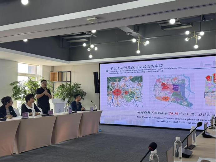 随后,公司各系负责人、管委会各部门负责人和企业代表分别发言,就合作意向开展了深入交流,就多个领域达成共识:建立员工实习实践基地与就业推荐机制;组织员工参与商务区高端论坛志愿服务与专业认知活动;联合开展运河商务区金融业态深度调研与副中心发展专题研究;探索在党建共建等方面深化合作。会谈结束后,公司一行实地参观了运河商务区展厅,进一步强化了对区域发展蓝图的直观认识。