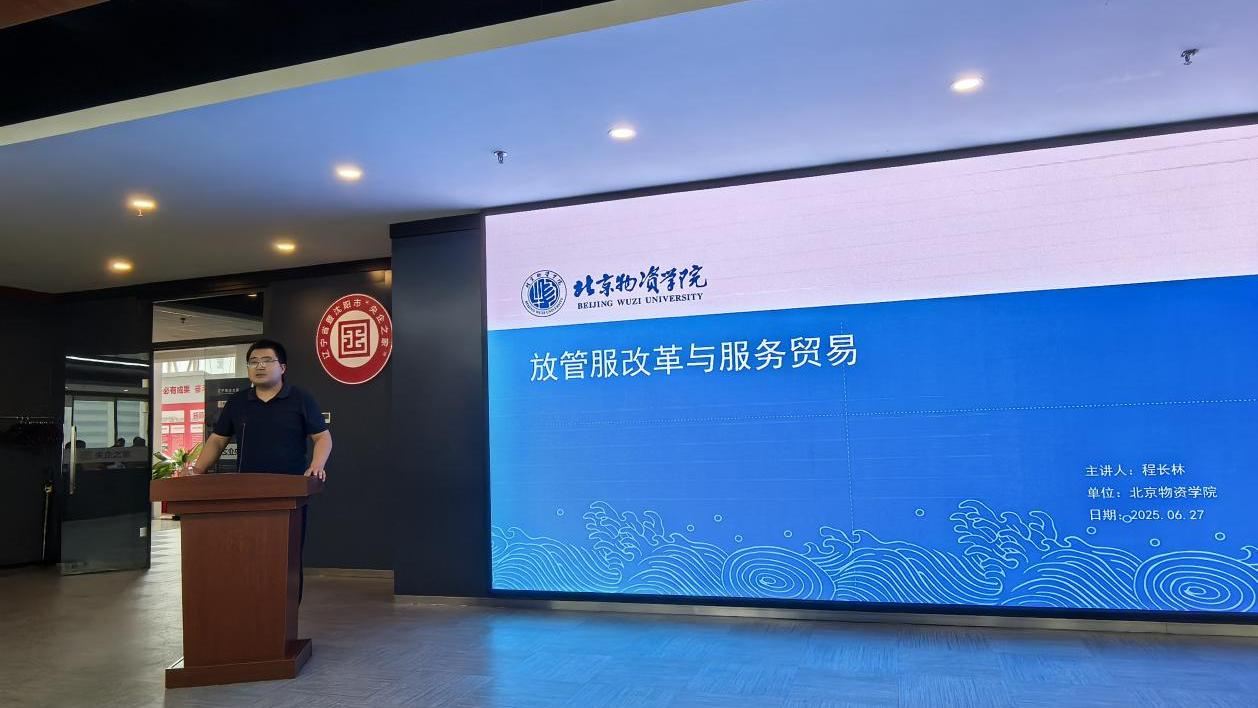 调研期间,伟德国际bevictor1946经理助理程长林副教授在开发区产业会客厅为辖区内各相关单位做主题为““放管服”改革与服务贸易”专题报告。讲解当前国内外服务贸易主要类型、特征及模式等,并以浙江省“放管服”改革先进经验为例,结合开发区工作实际,讲解“放管服”改革背景、政务服务创新模式、先行先试制度设计,推动政府数字化转型,优化营商环境,提升政务服务效能和品质等内容。