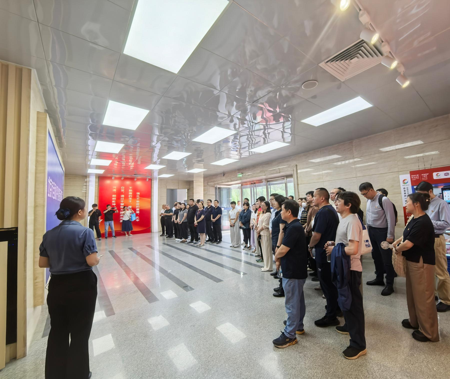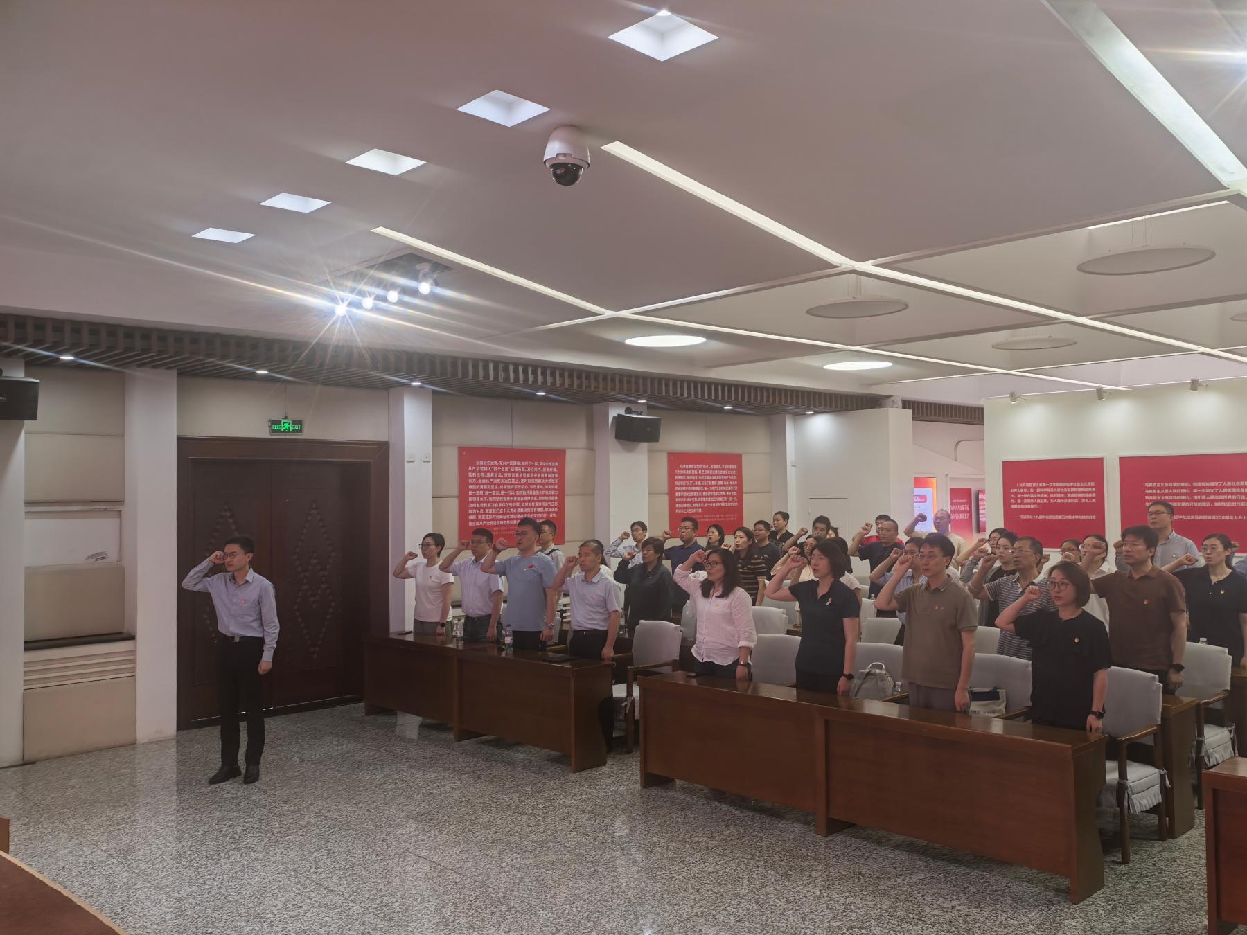 参观尾声,所有党员在鲜红的党旗下庄重立誓,面对党旗,全体成员重温入党誓词,展现了每一位党员牢记初心使命、严守党的纪律的坚强决心。