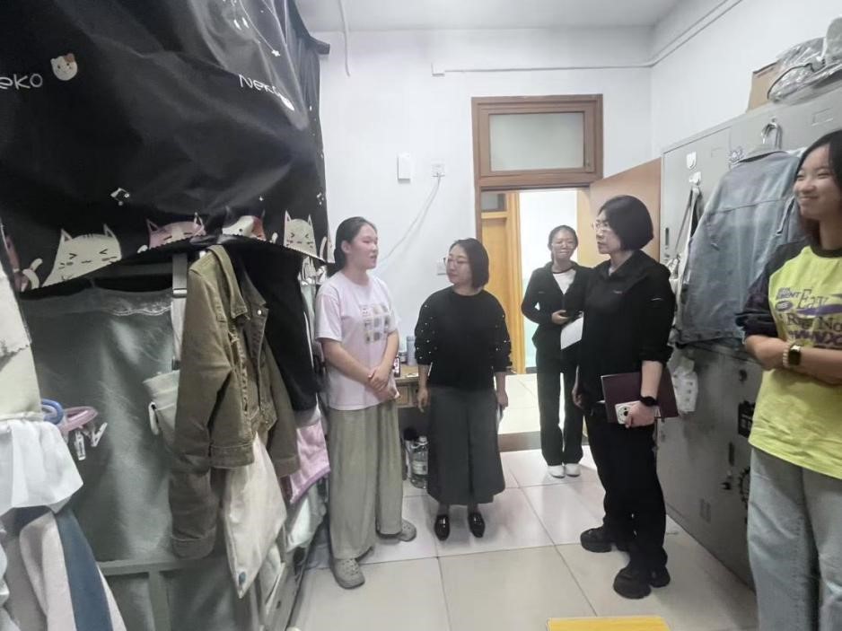 走访过程中,付莉书记和陆畅副书记逐一查看了申报优秀员工宿舍的卫生状况、物品摆放及文化布置,与同学们亲切交流,详细了解宿舍日常管理情况。老师们结合评选标准中环境卫生、文化氛围、集体协作等维度,对宿舍整体环境提出了具体改进建议,鼓励同学们以评促建,打造整洁美观、富有文化特色的宿舍空间。