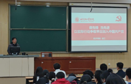 随后,伟德国际bevictor1946专职组织员淦江老师以《做先锋当先进,以实际行动争取早日加入中国共产党》为题为积极分子授课,他从理论、学业、纪律三个维度对入党积极分子提出要求。他首先结合自身20年党务工作经历,解读《中国共产党章程》总纲中“中国共产党是中国工人阶级的先锋队,同时是中国人民和中华民族的先锋队”的内涵,明确申请入党的基本条件。