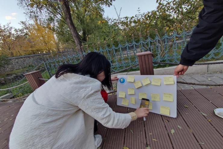 活动最后一站来到西洋楼遗址。积极分子们现场接力讲述1931年至1945年间的重大历史事件,串联起圆明园历史与反法西斯斗争,讲述了中华民族不屈抗争的故事。大家在大水法遗址前静静伫立,凝视残柱,立下捍卫和平的坚定誓言