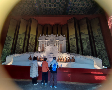 活动首站位于圆明园博物馆所在地正觉寺,成员在参观后围绕“文物承记忆,抗争续精神”展开交流,结合馆藏文物背后的历史故事,讲述抗战时期民众保护文化遗产、抵制文化掠夺、抗击法西斯侵略的感人事迹。有党员表示:“文物不仅是文明的载体,更是民族精神的见证,传承文明、守护历史是我们义不容辞的责任。”