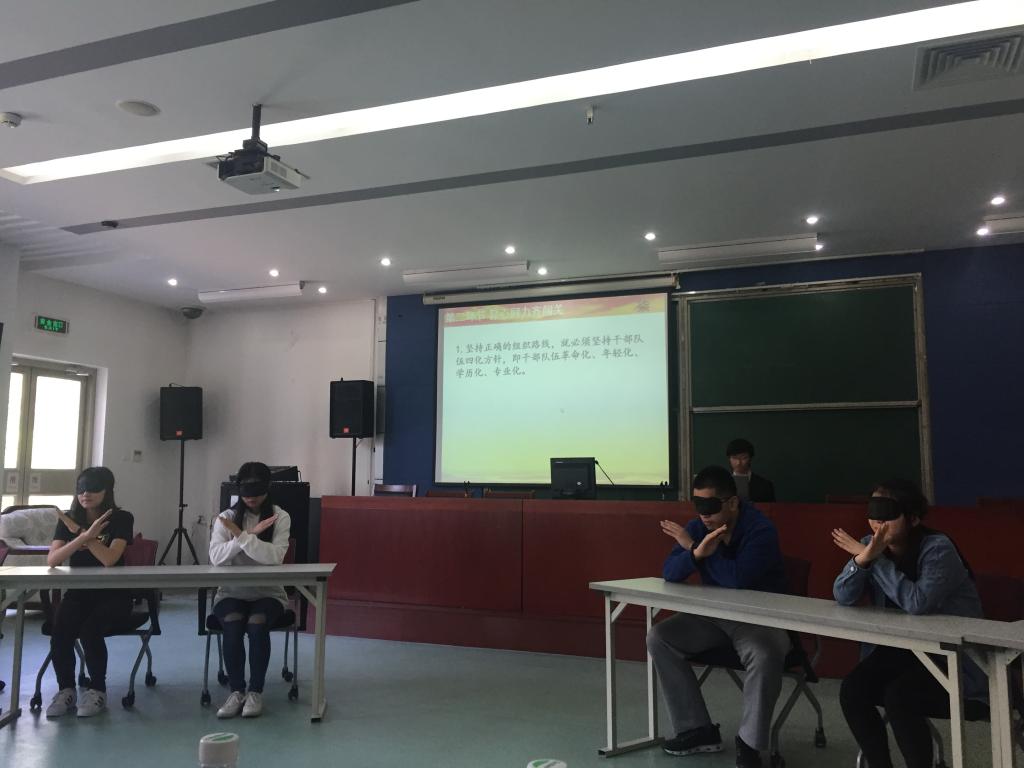 第二环节异心同力齐闯关;四个员工党支部分别派出6名选手上场并佩戴眼罩,坐在台上指定位置通过手势判断正误。6位同学的答案一致且答对则每道题加10分,答案不一致不扣分,若答案一致且答错则扣10分。本轮比赛环节既充满了趣味性,又检验了同学们党的理论学习的成效。