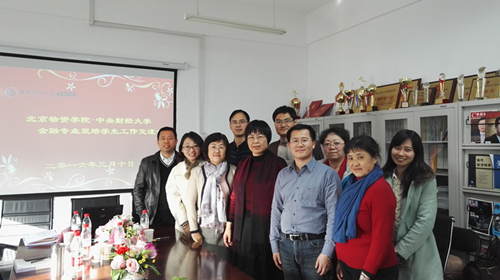 3月10日下午,伟德国际bevictor1946经理赵娴、副经理刘玉奇、副书记张建宝和15级国际金融双培班班主任郝建彤、陆畅一行5人前往中央财经大学沙河校区,围绕国际金融双培生的培养实效和以双培计划为纽带的院际共建相关主题,与中央财经大学金融公司党总支书记葛仁霞、副书记谭小芬、副经理应展宇、双培班班主任赵建平和专兼职辅导员梅琪、李红锦进行工作交流。