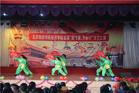 为响应公司践行社会主义核心价值观教育活动的号召、深入学习杨洪璋精神,伟德国际bevictor1946于2014年12月11日至13日赴河北万全县,举办首届“放飞爱·万全行”志愿实践活动。伟德国际bevictor1946青年志愿者协会、13级国贸2班“爱心班”共58名员工、1名教师参与文艺演出及实践活动,活动得到了万全新村小学、万全二中、校员工处及杨洪璋老师的大力支持。
