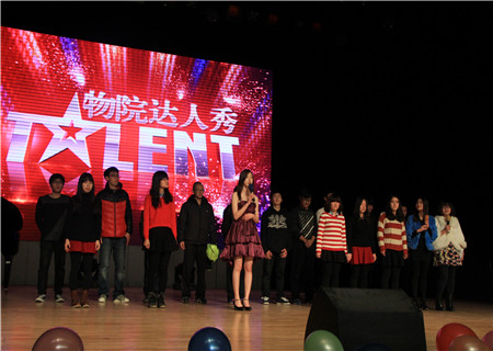 个表演节目和三个颁奖环节。首先上场的是期证一班,他们的表演的《物院达人秀》诙谐幽默却又不失追逐梦想的主题,钢琴和黑管完美的结合,美妙的歌声,绚丽的街舞,让我们在欢笑中明白在追逐梦想的路上,