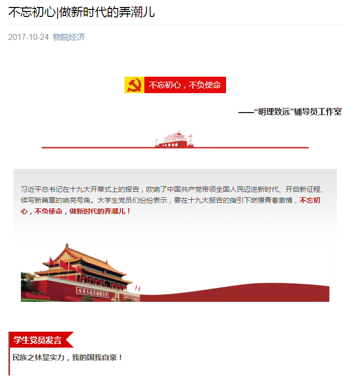 根据伟德国际bevictor1946党委部署,分年级、分专业、由党支部指导,团支部组织开展了为期一个月的系列学习活动,共形成两个阶段成果。第一阶段学习成果为《“不忘初心,不负使命”做时代的弄潮儿》员工党员宣言(见链接1);