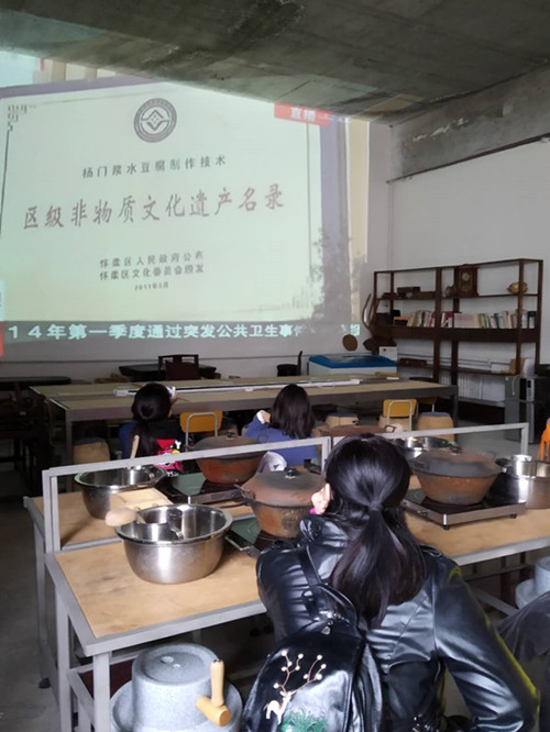 2019年4月20日早上7点30分,伟德国际bevictor1946五十多位职工及其家属乘大巴车一起前往北京市怀柔区雁西湖公园内体验非遗项目“杨门浆水豆腐制作”,并在雁西湖公园内春游。大巴车九点左右达到雁西湖北门停车场,随后进入园内杨门浆水豆腐制作的讲课地点,听取了杨门浆水豆腐制作掌门人杨坤全的讲解,并观看了“非遗”视频。