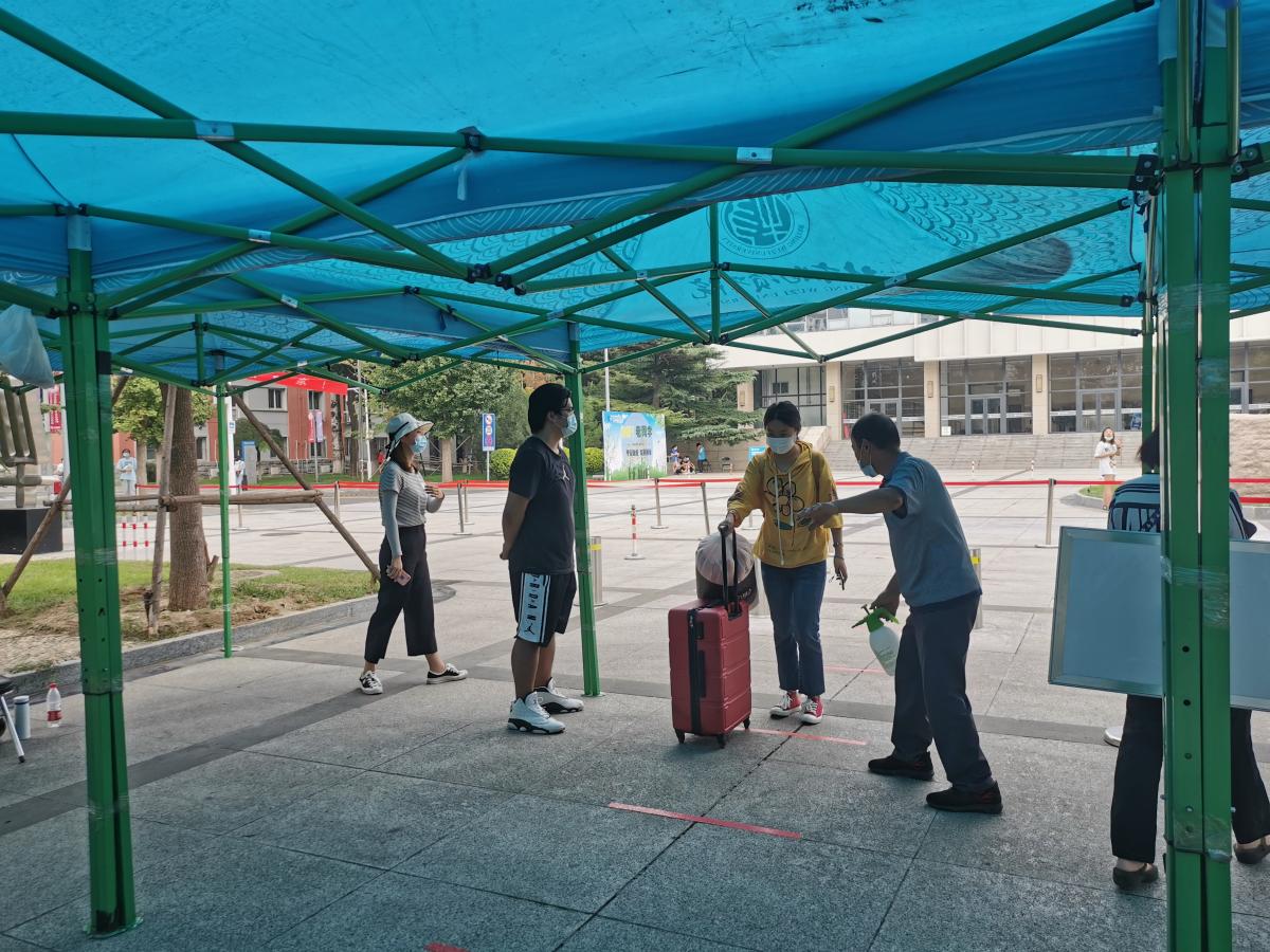 与此同时,公司多位老师、同学也积极参与了这次返校志愿工作,如:在校门口老师为返校员工办理入校手续,在人文楼117、121公司同学积极配合老师为同学们发放防疫物资和部分生活用品,在机场、火车站志愿者配合公司完成接站任务,在校园内也积极帮助返校员工搬运行李等。