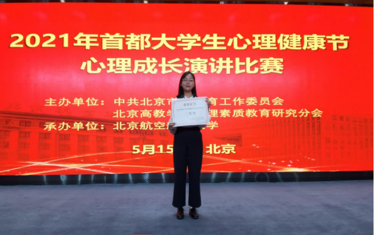 2021年5月15日下午,首都高校老员工心理健康节心理成长演讲比赛决赛于北京航空航天大学如期举行,伟德国际bevictor1946毛婷同学代表伟德源自英国始于1946参赛并荣获一等奖。