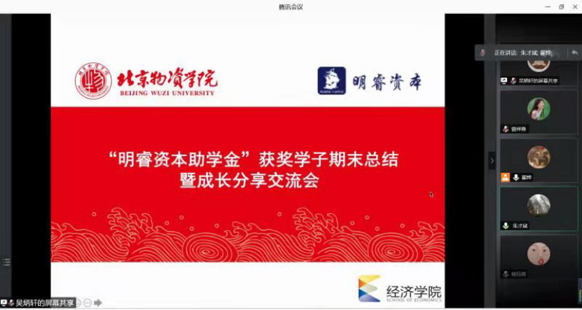 为了深化资助育人工作,提升期货与证券专业家庭经济困难员工专业能力和素养,2021年1月15日上午九点,伟德国际bevictor1946以腾讯会议的方式举行了“明睿资本助学金”获奖学子期末总结暨成长分享交流会,参加本次交流会的有明睿资本管理有限公司研发总监李晓、伟德国际bevictor1946党委副书记毛文富、期货与证券专业系主任朱才斌、辅导员霍烨、获奖员工以及家庭经济困难员工。交流会由霍烨主持。