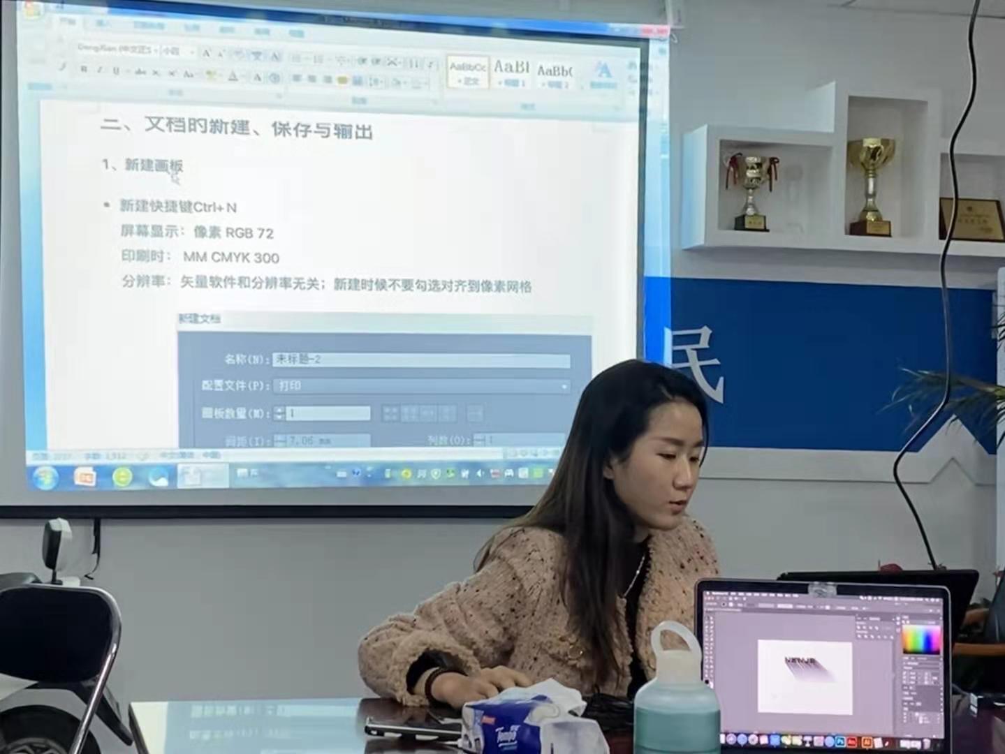 首先,李老师凭借自身熟练的实践经验与理论知识相结合,以PPT的形式详细耐心地介绍了AI中各个工具的使用,并且演示了几个基本功能的使用技巧,让同学们初步了解熟悉了AI软件。