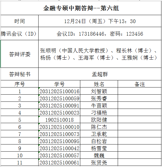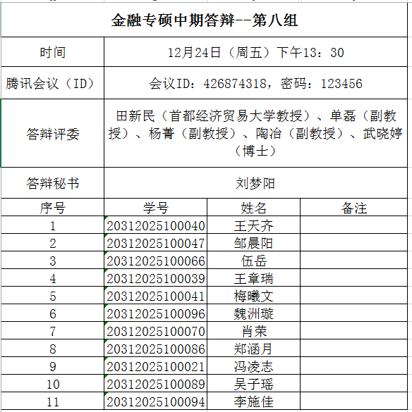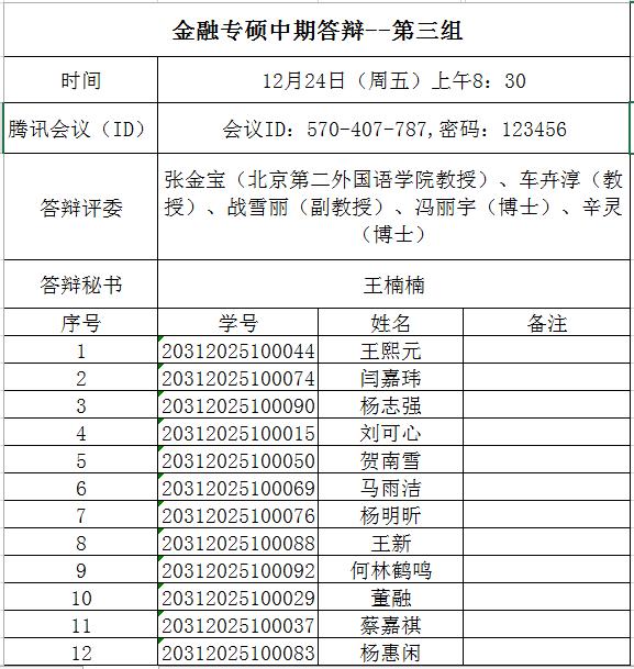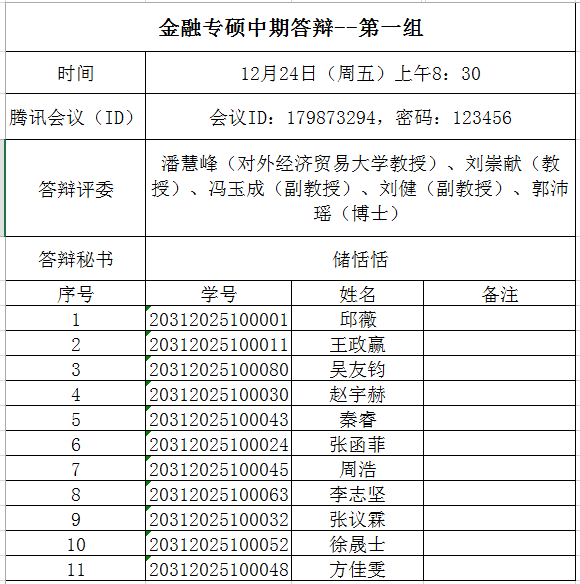 根据公司硕士学位论文管理文件和培养方案的相关要求,现采取线上视频会议的方式开展2020级金融专业硕士研究生学位论文中期检查工作,具体安排如下: