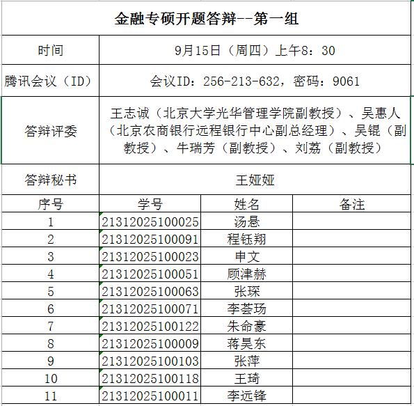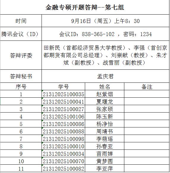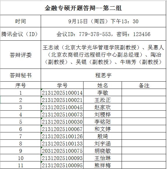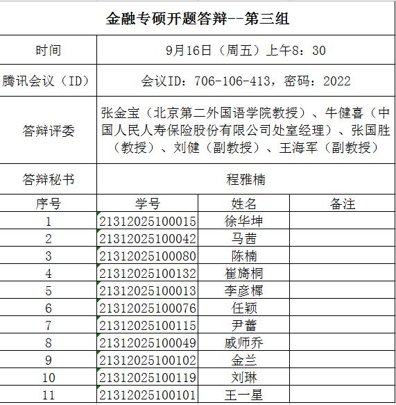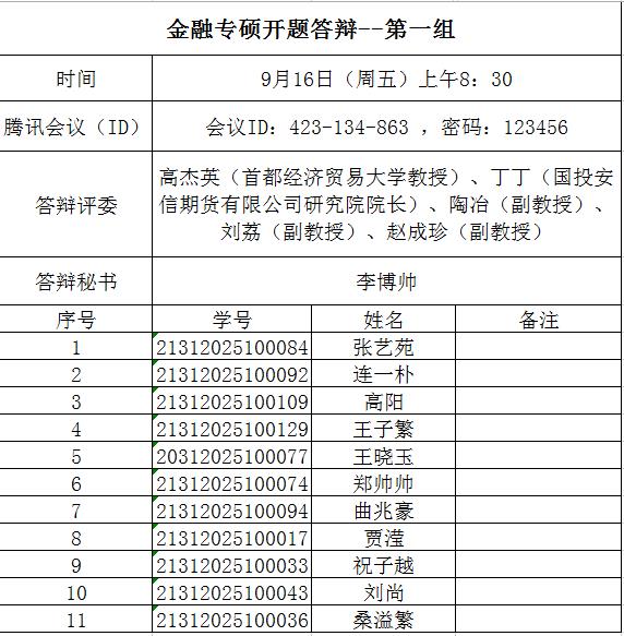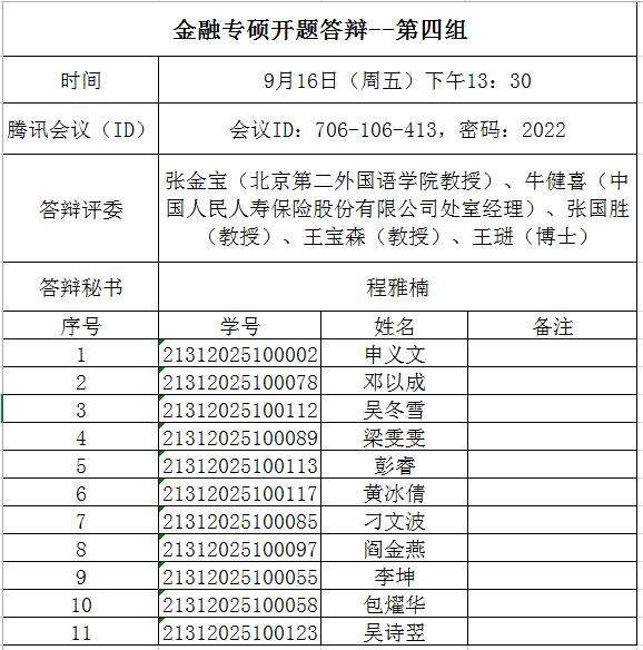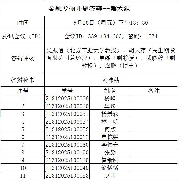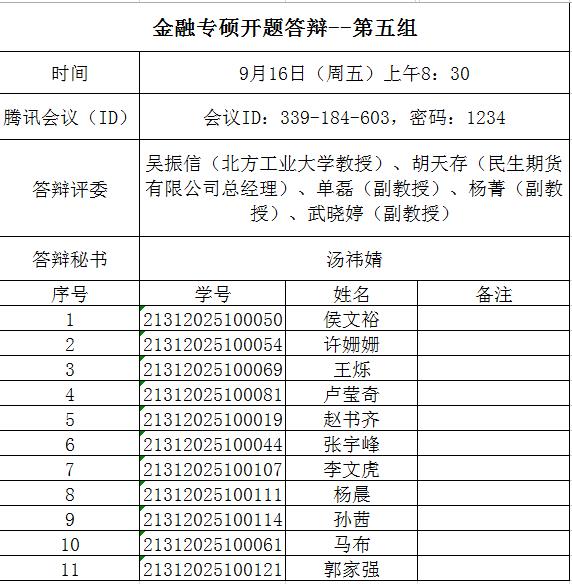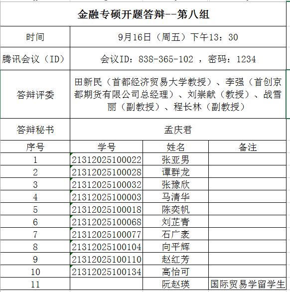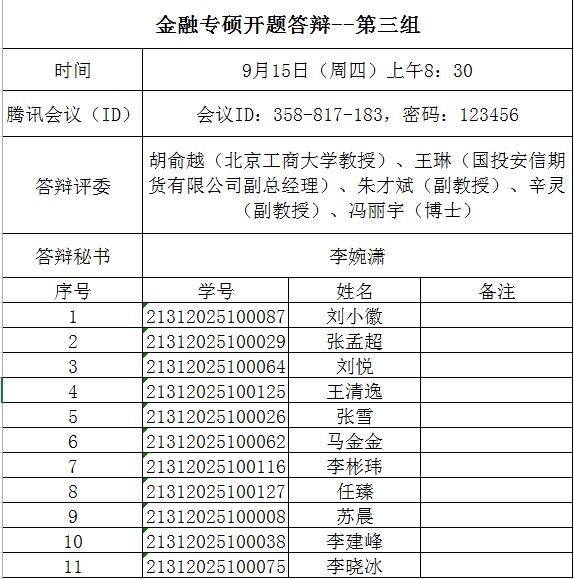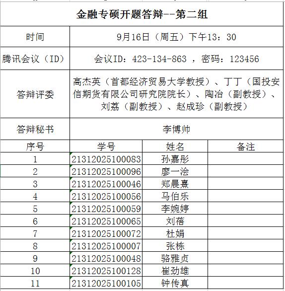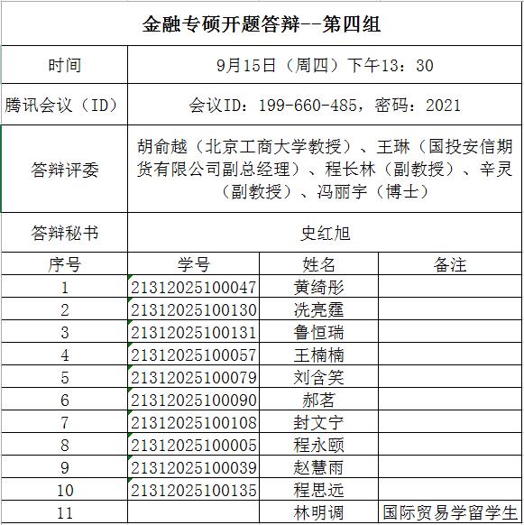 为落实公司关于疫情防控工作要求,在总体公司产品计划保持不变的原则下,根据《关于组织2021级金融专硕研究生学位论文开题考核的通知》相关安排,按照研究生院总体工作部署,伟德国际bevictor1946采取线上视频会议的方式开展2021级两年制金融硕士研究生(含两名国际贸易学专业研究生)学位论文开题答辩工作,具体安排如下: