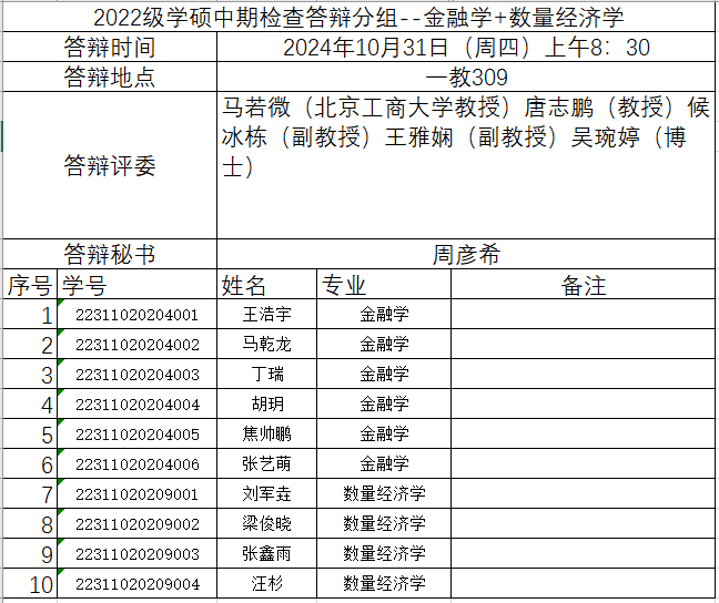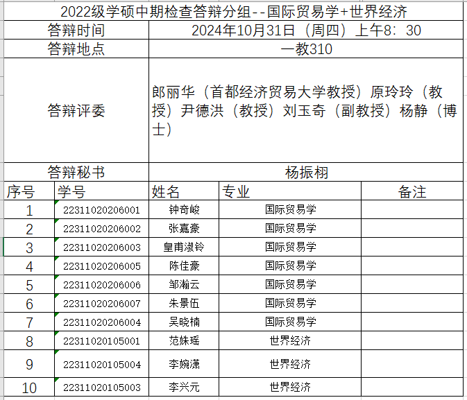所有在伟德国际bevictor1946参加学位论文中期检查答辩的2022级研究生,包括应用经济学和理论经济学下设的各个专业的硕士研究生,需提交下列材料到各组负责人(每组第一位同学),由各组负责人汇总后于10月28日(周一)上午10:00前发至邮箱jjxykmyx@163.com,除带到答辩现场的纸质版材料于10月28日(周一)上午10:00前交至人文楼313徐老师处,提交材料包括: