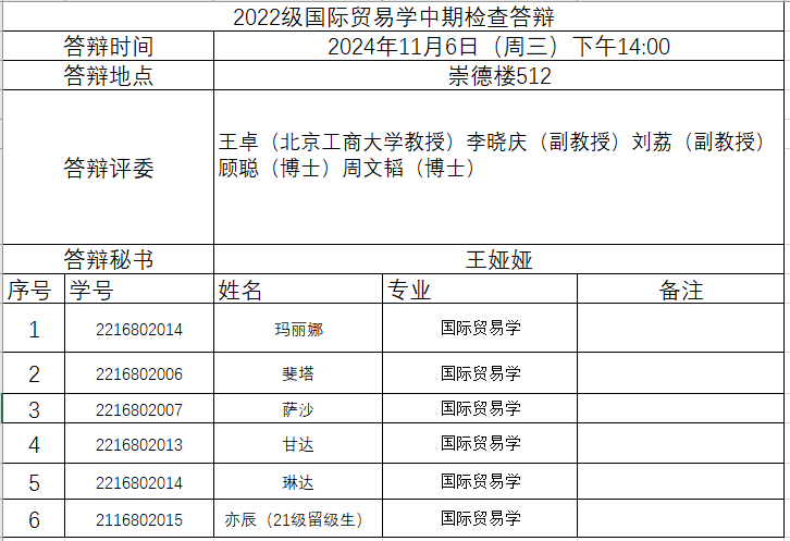 各位2022级国际贸易学专业职工: