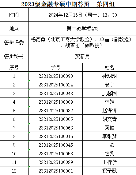 根据公司硕士学位论文管理文件和培养方案的相关要求,现线下开展2023级金融专业硕士研究生学位论文中期检查工作,具体安排如下: