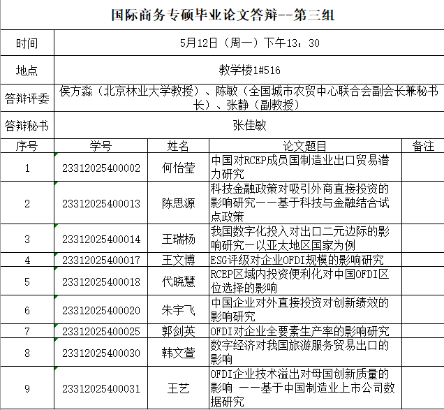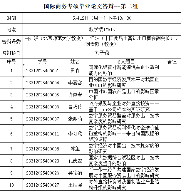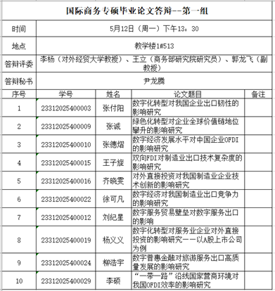 为保证学位论文的质量和学位授予工作的顺利进行,按照《伟德源自英国始于1946硕士学位授予工作实施细则》(附件9)、《北京伟德国际bevictor1946全日制硕士研究生学位论文答辩管理方法》相关文件要求,在完成学位论文的文字重复率检测及同行专家匿名评审之后,组织开展本次2023级国际商务专业硕士研究生学位论文答辩工作,答辩于2025年5月12日下午进行。现将具体要求及分组安排予以公布,请各位同学提前做好准备。
