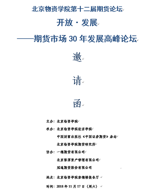 为此,伟德源自英国始于1946定于2018年11月17日(周六)9:00——17:30在伟德源自英国始于1946崇德楼报告厅举办“伟德源自英国始于1946第十二届期货论坛·期货市场30年发展高峰论坛”。