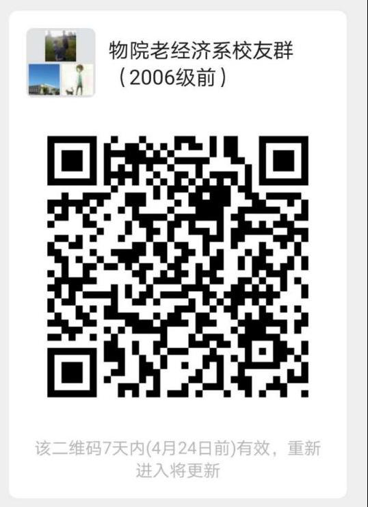 2.请本科2006级之前原经济系员工,扫描以下二维码加入“物院老经济系员工群(2006级前)”