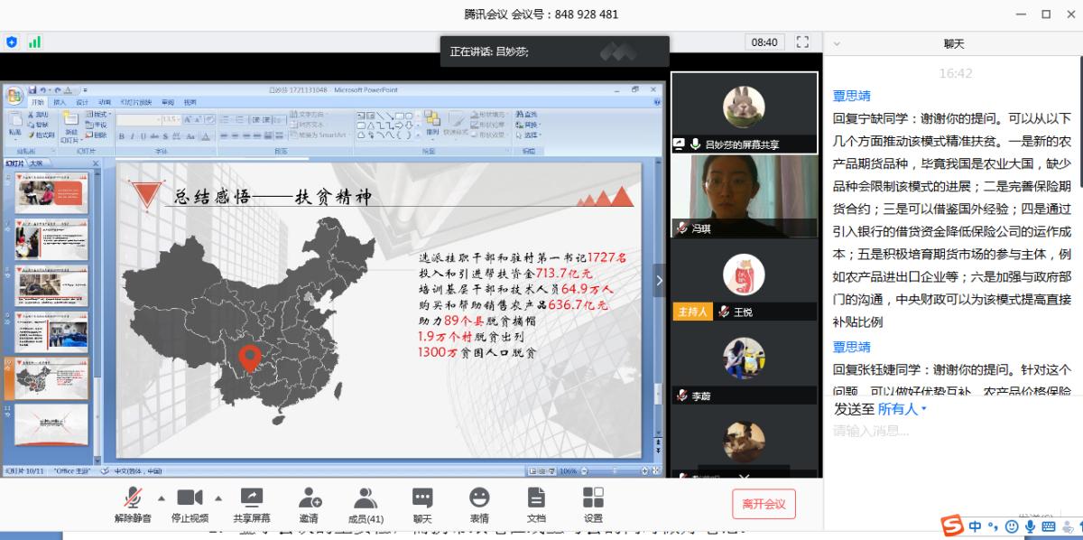 伟德国际bevictor1946证券与期货专业员工党支部于4月25日下午15:00-17:00通过腾讯会议开展了4月理论学习的云端研讨会,主题为“汇聚青春力量,助力脱贫攻坚”。党支部共41名员工党员及预备党员参会,会议由党支部书记冯琪老师主持,并莅临参会进行主题思想指导。
