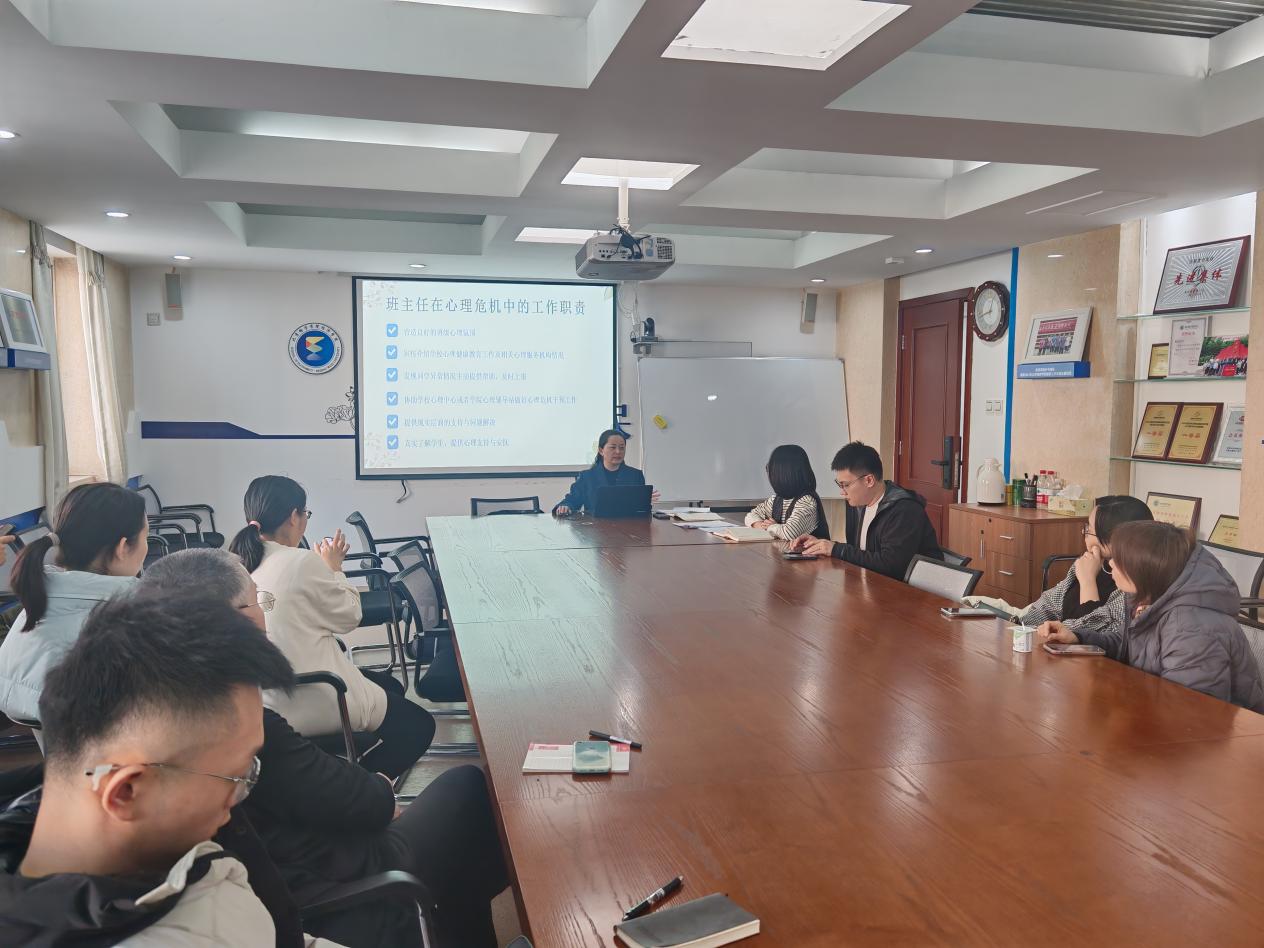 为加强新生心理健康教育,提高员工工作队伍对心理危机的科学识别与实时预警能力,提升心理健康工作水平,伟德国际bevictor1946于11月19日中午召开2024级新生班主任、辅导员心理健康工作专项培训,培训由公司心理健康中心徐青林老师主讲。