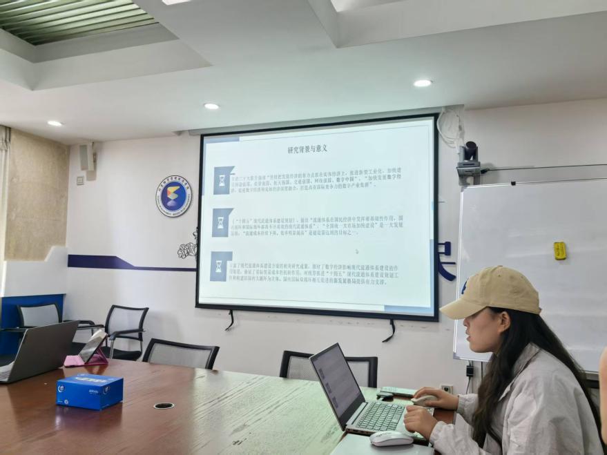 苏怡嘉同学分享的是自己的毕业论文《数字经济促进现代流通体系建设的机制研究——基于省际贸易成本的视角》。研究结合“十四五”现代流通体系建设规划,构建省际贸易成本指标体系,分析数字经济对现代流通体系建设的促进作用及其机制。研究发现,数字经济发展水平的提高可以促进现代流通体系的建设,降低省际贸易成本可以加强数字经济对现代流通体系建设的正向作用,并提出了加快现代流通体系进程的政策建议。