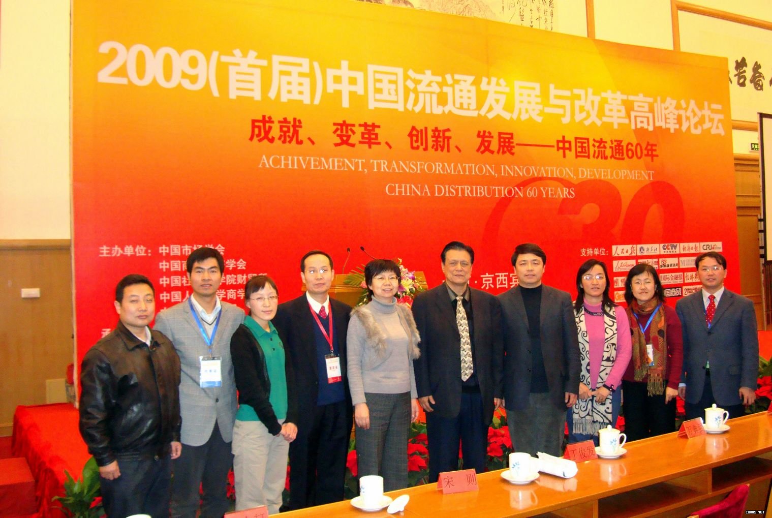2009年11月28日—29日,中国流通发展与改革高峰论坛在京西宾馆举行,王稼琼董事长、沈小静副书记带队,流通经济研究所部分研究人员和中国流通经济杂志社部分成员以及部分研究生一行13人参加了论坛。此次论坛由中国市场学会、中国商业经济学会、中国社科院财贸经济研究所、中国人民大学商公司、中国流通产业网联合主办,主题是“成就、变革、创新、发展”。论坛邀请了国家商务部、国家发改委、国务院研究室、中国社会科公司、国务院发展研究中心、中国人民大学等政府部门、国内外知名流通研究机构和重点流通企业的领导、学者参加,并围绕主题进行了深层次研讨。