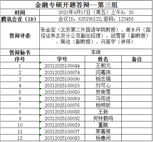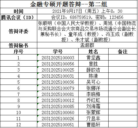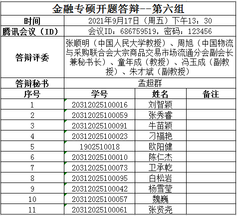 为落实公司关于疫情防控工作要求,在总体公司产品计划保持不变的原则下,根据《关于组织2020级金融专硕研究生学位论文开题考核的通知》(/info/1392/9918.htm)相关安排,按照研究生院总体工作部署,伟德国际bevictor1946采取线上视频会议的方式开展2020级两年制金融硕士研究生学位论文开题答辩工作,具体安排如下: