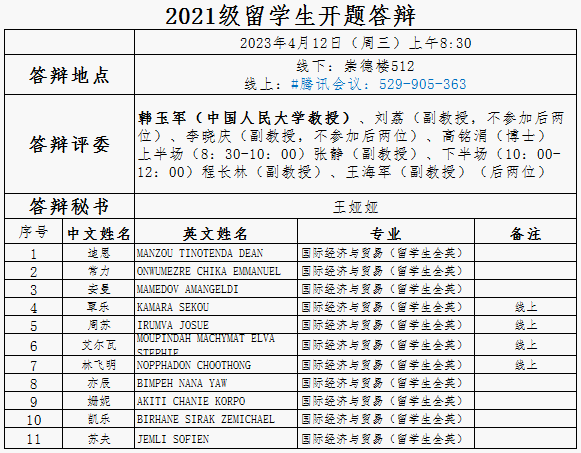 1.各位同学需按照各组答辩顺序进行汇报,线上参加的同学请注意腾讯会议需改名为“答辩序号+姓名+专业”。