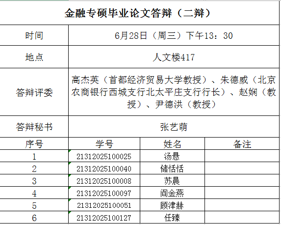 公司定于6月28日(周三)下午13:30进行毕业论文第二次答辩,现将相关安排进行公示。