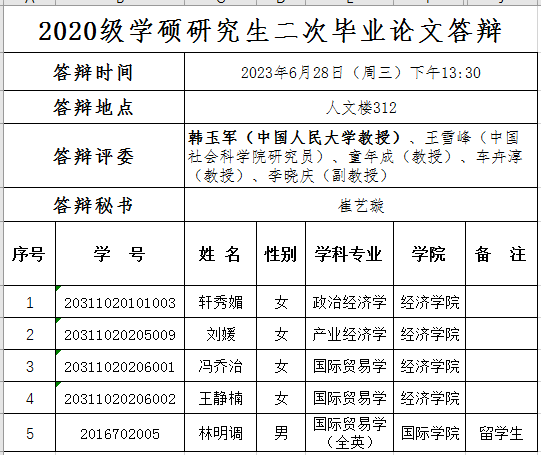 请学硕组同学于26日下午5:00前将答辩材料提交至人文楼315办公室,电子版发到jjxykm@126.com