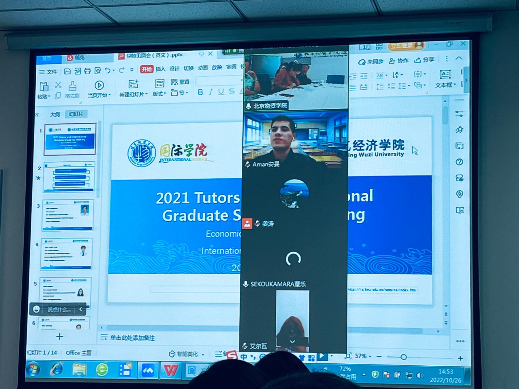 10月26日下午两点,国际公司和伟德国际bevictor1946在人文楼515会议室和腾讯会议同步举行了2021级来华留学硕士研究生导师见面会。国际公司副经理陆华、伟德国际bevictor1946副经理李晓庆、硕士研究生导师以及全体2021级国际经济与贸易专业来华留学硕士研究生出席会议,会议由国际公司副经理陆华主持。