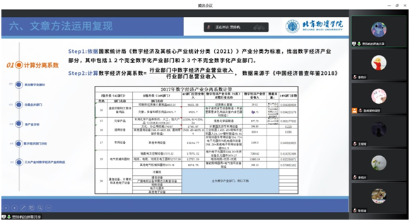12月19日,伟德国际bevictor1946师生研讨会第十五期如期举行。这也是伟德国际bevictor19462022学年举行的最后一场师生研讨会。此次活动主题为“投入产出视角下中国数字经济产业的关联拉动效应研究”,主讲人为2022级硕士生王娅娅和贾扬帆,指导老师为张恪渝副教授。伟德国际bevictor1946李晓庆老师、余曼老师、李光臣老师等30余位师生线上共同参会研讨。