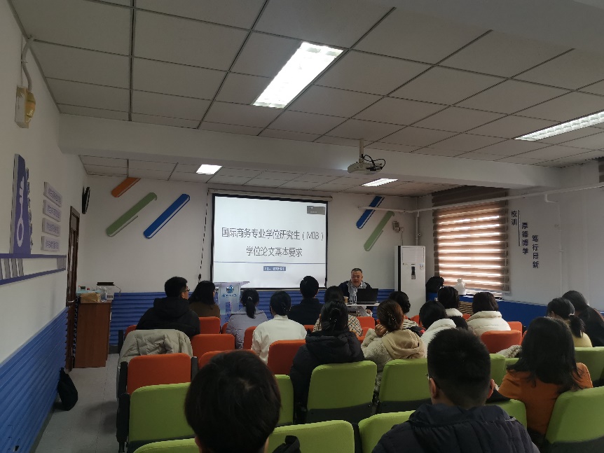 本次讲座历时近两小时,从国际商务专业硕士毕业论文的总体写作要求出发,蓝教授细致地为公司师生阐述了专题研究类、调研报告类、案例分析报告类、商业计划书、项目可行性报告等多种国商专硕研究生学位论文的基本定位、选题要求、内容要求、规范性要求、创新性要求等,并重点强调要多关注专业硕士学位论文的定位,鼓励师生多进行调研报告类与案例分析类论文的指导和写作,让论文从实践中来、再到实践中去。另外,蓝教授还为公司师生分享了他在对外经济贸易大学国际商务专硕公司产品中的宝贵实践经验,并解答了现场老师的疑问。