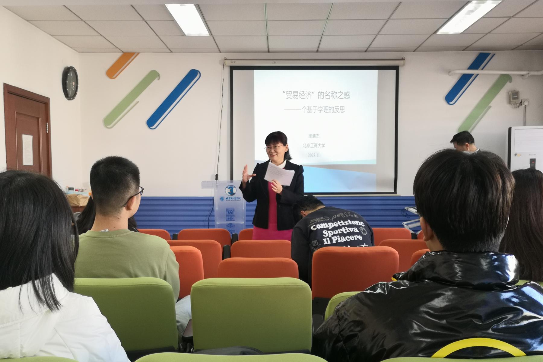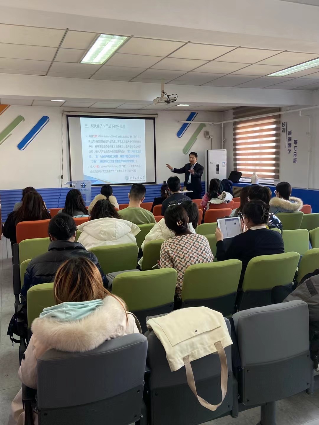 周清杰教授以“贸易经济的名称之惑—— 一个基于学理的反思”为讲座主题,从商学教育的历史演变、贸易经济在现代经济学知识谱系中的地位出发,阐释了困扰国内高校商贸流通领域的底层逻辑问题,探讨了贸易经济人才培养与学术研究的路径。同时厘清现代经济学范式下的分销与零售行业的概念范畴,并对“商学”的未来发展进行了展望。周清杰教授生动详明的讲座内容和治学严谨的研究方法给在场师生很大的启发。
